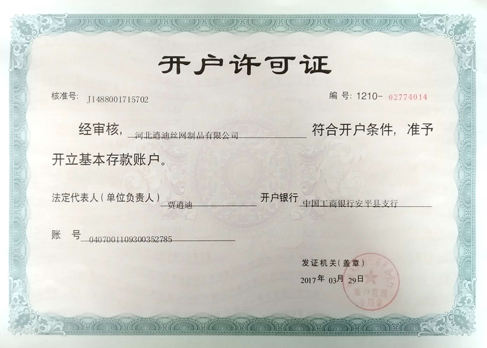 河北逍迪絲網(wǎng)制品有限公司誠信天下,誠信是我們公司一個(gè)原則問題不可撼動(dòng)的,以心中有誠信的思想結(jié)交五湖四海的朋友,能達(dá)到雙贏是最好的,我們堅(jiān)信朋友多了路好走,我們公司都是老朋友多,我們一直是這樣做的。河北逍迪絲網(wǎng)制品有限公司成立于2013年注冊(cè)資本壹仟伍佰萬整,主要生產(chǎn)沖孔網(wǎng),鋼格板,金屬防蟲網(wǎng),如實(shí)的實(shí)體廠家,是一家-研發(fā)-銷售-生產(chǎn)-安裝-售后一條龍公司,2019年通過了ISO 9001認(rèn)證管理體系符合GB/T 19001-2016/ISO 9001:2015標(biāo)準(zhǔn),同時(shí)通過了SGS認(rèn)證,擁有商標(biāo)版權(quán)2品牌,擁有一個(gè)著作版權(quán),河北逍迪絲網(wǎng)制品有限公司位于中國有名的(絲網(wǎng)之鄉(xiāng))安平縣,于天津,北京,雄安,石家莊相鄰,交通非常發(fā)達(dá),出口可以選擇天津港口非常近每天都有接貨送貨往返車輛,空運(yùn)可以選擇石家莊正定機(jī)場(chǎng),附近也有鐵路運(yùn)輸,當(dāng)?shù)剡€有兩個(gè)生態(tài)物流園區(qū)發(fā)往全國各地,我們沖孔網(wǎng)工廠生產(chǎn)設(shè)備有:普通沖壓機(jī),高速?zèng)_壓機(jī),自主研發(fā)小微孔沖壓機(jī),龍門沖,磚塔沖孔,重型沖孔機(jī),萬瓦級(jí)別激光切割機(jī),3000W激光切割機(jī),焊接設(shè)備,折彎?rùn)C(jī),校平機(jī),剪板機(jī),精密校平機(jī),(對(duì)板面平整度要求苛刻的客戶群體0.5-0.2誤差)我們公司銷售市場(chǎng)沒有局限性國內(nèi)國外都供應(yīng),擁有出口權(quán)...